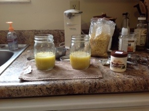 During our Hippy Weekend, I saw my little granddaughter after her bath. Unfortunately, she seems to have inherited the sensitive skin gene and she had several patches of eczema. We decided to research some websites that had recipes for laundry detergent without the Borax. It appeared that most people were substituting the borax with the baking soda. We followed the suggestions and mixed the following detergent.