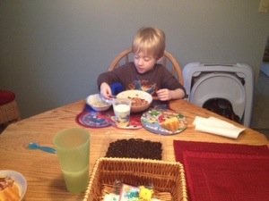 We started making our own laundry detergent about a year ago and then suddenly it just became easier to buy a “green” detergent and fabric softener. So, for the last couple of months that was what we were using. However, I have recently had eczema reappear. Whenever this happens, I try to evaluate what I have had to eat or what I have contacted that could have set it off. After carefully ruling everything out, it has come down to the detergent and fabric softener. So, I have once again mixed the ingredients of the homemade detergent and I am using vinegar as a fabric softener. I have seen almost an immediate improvement. The detergent that I mix is dry, but it dissolves easily and does a very nice job cleaning the clothes and making them smell fresh.
